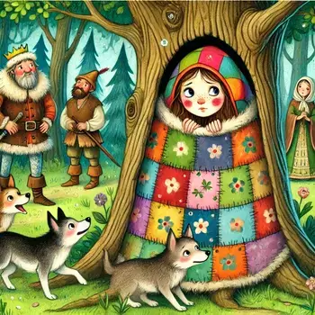 Cuando la joven vio que su plan no había funcionado, decidió huir. Esa noche, se puso su abrigo de pieles, se ensució la cara con hollín, guardó sus vestidos en una cáscara de nuez (¡vaya truco de magia!) y salió corriendo hasta llegar a un bosque. Allí encontró un árbol hueco y se metió a dormir.