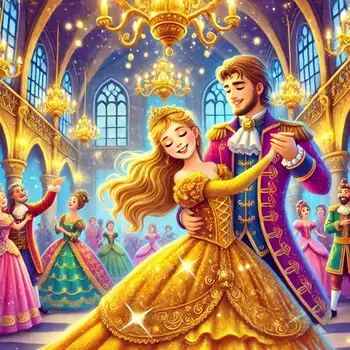 En la tercera fiesta, llevó su vestido brillante como las estrellas y esta vez, mientras bailaban, el rey le puso un anillo en el dedo sin que ella lo notara.