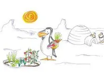 Menos mal que a la foquita se le ocurrió mirar para arriba. ¿Sabéis que vieron? La luna, ¿Y qué más? Las estrellas. Pingüino se empezaba a acordar que encima de su casa las estrellas