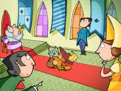 -¡Oh, majestad! Unos ladrones han robado la ropa de mi amo, el marqués de carabás, mientras se bañaba en el río y ahora no puede salir del agua.