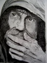 cubiertas de barro que parecía imposible que pudiera levantar los pies del suelo. Su cabello y su barba eran largos y estaban enmarañados y su piel ennegrecida aparecía surcada de arrugas.