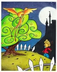 -¡Qué alegría tendrá el rey cuando vea que he capturado al pájaro de oro y que ya no podrá robarle ninguna manzana!