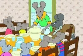 silbido de la tetera, donde el agua hervía cantando su canción de todos los días. Entonces echó a correr más veloz que un super-ratón, llegó a la cocina y se escondió detrás de unas escobas.