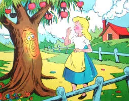 -¡A buen sitio has ido a parar! -dijo la muchacha, burlándose del manzano y siguiendo su camino-. Yo no he venido aquí a trabajar..
