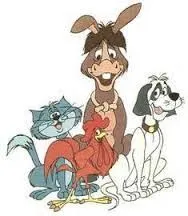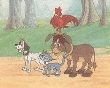 El gallo se unió al asno, al gato, y al perro, y los cuatro, para ganarse la vida, decidieron formar un orfeón.