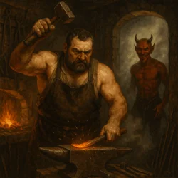 El herrero patxi, era un hombre malvado y llevaba una vida pecaminosa. Tal era así que un buen día llego a su casa un demonio con la intención de llevarselo con él al infierno, para que pagase por sus pecados. Allí se encontraba Patxi trabajando en su herrería, a ratos martilleando,