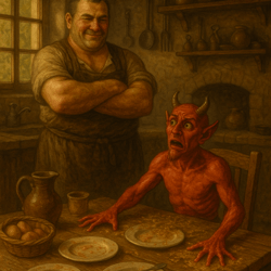 -Buenos días- dijo el demonio -he oído decir que eres realmente malo y he venido para llevarte conmigo al infierno. -No está mal dicho, -le respondio patxi -pero vayamos prímero a comer un bocado.