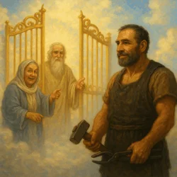 Patxi al ver que en el infierno no era bienvenido, decidió probar suerte en el cielo y se encaminó haci allí. Al llegar golpeó la puerta, en la que al momento se asomó san pedro. -¿Quién eres? -preguntó éste.