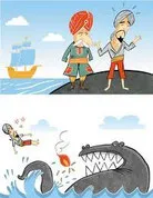 «siendo muy joven me embarqué con unos comerciantes hacia países lejanos. Desembarcamos en una isla que resultó ser una enorme ballena; ésta, asustada, nos lanzó al agua. Yo fui el único que se
