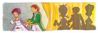 Luego entraron las camareras y le pusieron preciosos vestidos. También su padre llegó desde el reino vecino. Acudió la corte entera a felicitarla por su casamiento con el rey «pico de tordo» y