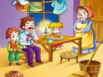Después de vestirse y lavarse, los niños fueron a la cocina. La madrastra les dio dos buenos pedazos de pan y les dijo: