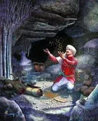 «después de aquello volví a embarcarme, y esta vez fui a parar a un valle lleno de diamantes. Allí cargué una bolsa con piedras preciosas y le entregué parte a un hombre para que me llevara a