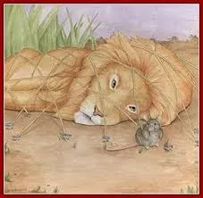 -¡Ja, ja! ¿Dices que me devolverás el favor si te perdono la vida? ¿Y cómo puede un animal tan pequeño como tú devolverme el favor? -preguntó el león.